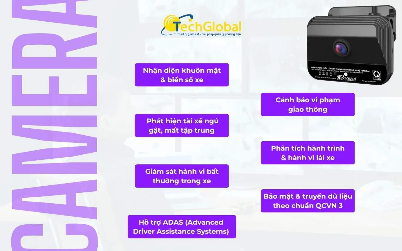 TechGlobal GPS & Camera cung cấp giải pháp TC500, đạt chứng nhận hợp chuẩn QCVN 31, tích hợp AI và hệ thống quản lý tập trung. Các tính năng chính: